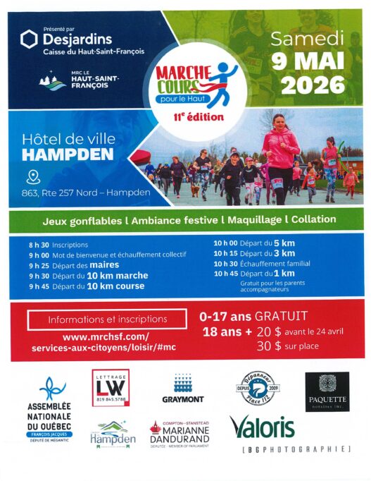 Message aux citoyens Vous avez une urgence en voirie? N’hésitez pas à contacter notre contremaître par intérim, Ghislain Alvarez, au 819-560-8450, poste 5. Que ce soit pour : un problème de déneigement, une problématique sur un chemin, des panneaux de… Lire la suite Lire la suite from URGENCE EN VOIRIE : 819-560-8450 POSTE 5